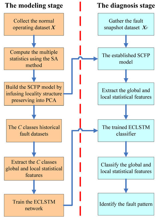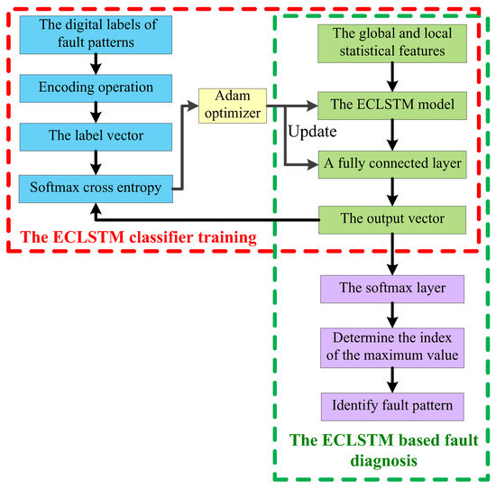 The implementation step of the ECLSTM based fault diagnosis scheme.