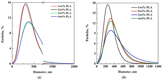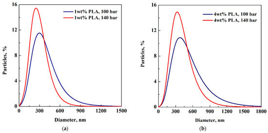 PSDs of 1 and 4 wt% PLA particles are reported, for example, in Figure 5.