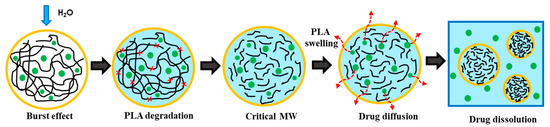 To deeply understand the CFX release mechanism from PLA nanoparticles, it is possible to consider the main steps involved in the PLA degradation mechanism (reported in Figure 9).