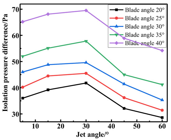 3.1. The Influence of Jet Angle on the Isolation Pressure Difference