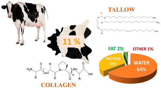 - Ockerman, H.W.; Basu, L. By-Products | Hides and Skins. In Encyclopedia of Meat Sciences; Academic Press: Cambridge, MA, USA, 2014; pp. 125–136. ISBN 9780123847317. [Google Scholar]