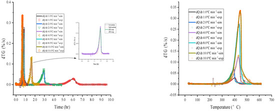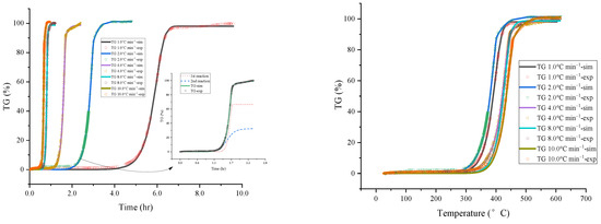 The database of this study was derived from a thermogravimetric analysis (TGA) experiment, and the instrument was purchased from Mettler Toledo Company, OH, USA. The experimental data and analysis were derived by measuring and recording the weight change of substances that were consumed by the reaction. In the experiment, a total of 3.0 ± 0.1 mg sample was placed in a 70 μL alumina crucible, and the reaction was initiated by heating the furnace body of the TGA. The experiment continuously introduced 50 mL min−1 of N2. The heating rate was set to 300.0 °C at the incremental of 1.0, 2.0, 4.0, 8.0, and 10.0 °C min−1 [21,22].