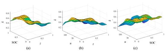 Since the development of battery technology, there have been many methods used to estimate SOC, including the traditional current integration method, battery internal resistance method, discharge test method, open circuit voltage method, load voltage method, Kalman filtering method, fuzzy logic theory method, and neural network method [57]. In the current integration method, SOC is estimated by accumulating the amount of charge and discharge during the charging and discharging of the battery. During charging, all the charge entering the battery stays in the battery, and during discharging, all the charge leaving the battery results in a decrease in SOC. The power battery SOC is estimated according to the current integration method [58]: