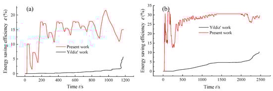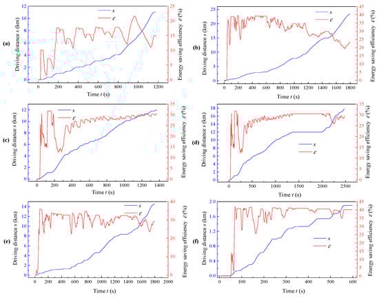 The regenerative braking recovery efficiency εr reflects the energy recovery of the vehicle’s kinetic energy in a single braking situation. Still, it cannot evaluate the energy recovery throughout the entire driving cycle. Another important parameter is the energy saving efficiency ε. The energy saving efficiency ε is the ratio of the total energy returned to the battery to the recovered energy from the regenerative braking system in the process of the driving cycle. The expression is as follows [64]: