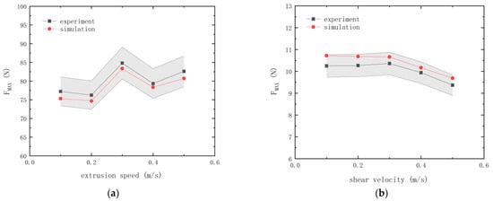 Here, and are, respectively, the maximum normal extrusion pressure and maximum shear force of the simulation test.