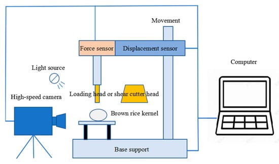 Rice is the main grain of more than half of the world’s population [1,2]. Rice is the product of Oryza sativa processing, which requires a series of procedures such as cleaning, husking, rough separation, milling, polishing, color selection, grading, and packing [3]. The rice has been husked to form brown rice, which is then ground and polished to form finished rice [4]. More than 90% of damage to rice is generated by crushing [5], which is caused by the excessive processing of brown rice by related equipment (rice milling machine and polishing machine) [6]. Excessive wear and breakage of brown rice kernels leads to a loss of nutrients [7] and reduces the processing quality. Clarifying the mechanism of breaking brown rice kernels using mechanical force, optimizing the key structure and operating parameters of the equipment, and then improving the stress characteristics of brown rice kernels and reducing the crushing rate are effective ways to solve the problem of excessive processing by rice milling and polishing equipment.