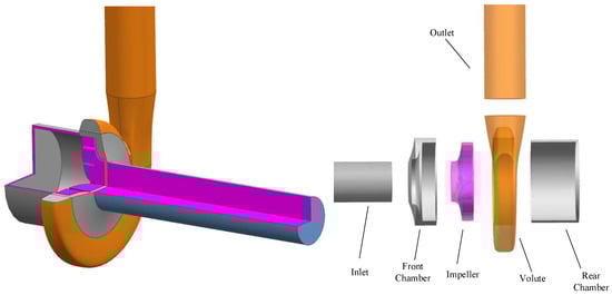Figure 4. Computational domain model for centrifugal pumps.