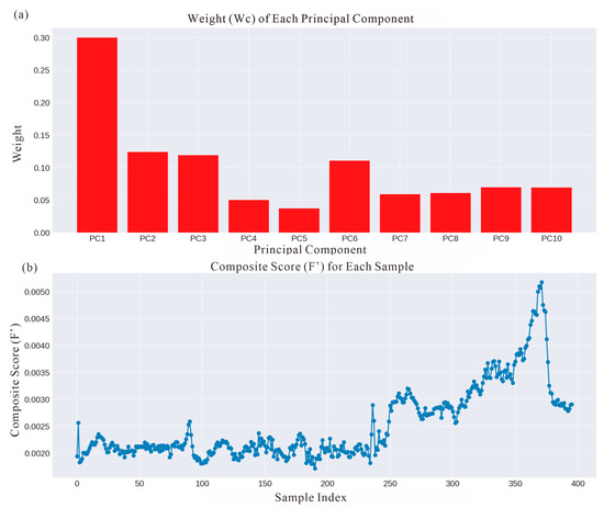 where is the weight of the principal component, and is the information entropy of the f principal component. Then, the comprehensive score of principal component of information entropy is calculated, and the formula is as follows:
