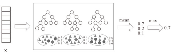 Figure 5 shows a deep confidence level forest [62,63,64]. The confidence screening mechanism aims to divide the instances of each level of the cascade into two subsets, those that are easy to predict and those that are more difficult to predict [62,63,64]. Specifically, if an instance is classified as belonging to the easily predictable subset, it will be directly outputted and used as the final result. Conversely, if an instance is determined to be difficult to predict, it needs to be passed to the next level of the cascaded forest [62,63,64].