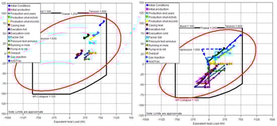 The strength of the 3.5-inch tubing used in the well was checked under the designed pressure and rate. Based on the 3.5 inches 10.2 lb/ft + 4.5 inches 9.2 lb/ft-P110 steel string combination, the pipe string was checked, as shown in Figure 7. The checked results show that the tensile safety factor was 1.62, the internal pressure safety factor was 1.56, the anti-extruding safety factor was 1.64, and the triaxial safety factor was 1.41. The safety requirements were met under the frac treatment conditions.