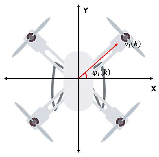 As shown in Figure 2, the l-th UAV flies at a velocity in each time slot k. This velocity cannot exceed the maximum flight speed . The flight direction is represented by the unit vector .