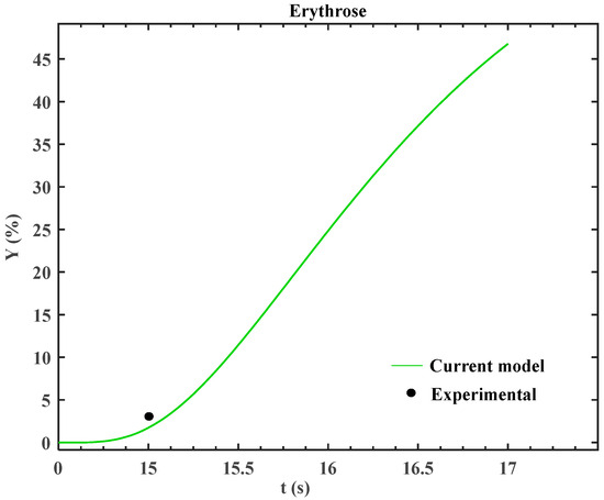 In addition, at either 380 or 382 °C, it is unable to achieve an acceptable erythrose yield at a residence time of 15 s. The optimal process parameters for an ideal yield of erythrose are temperature of 380 °C and a residence time of 18 s, based on the experimental measurements [23]. Besides, both modeling and experiments give a similar erythrose yield, i.e., 2.8% with a residence time of 15 s at 378 °C, as shown in Figure 6.