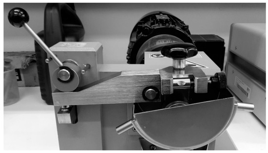 A WDT coulometer was used as standard to measure the water content of tested oil samples. The coulometric method enables the detection of small or even trace amounts of water in various solutions. Detection can be performed in solutions based on organic acids, hydrocarbons, alcohols, esters, and many other organic solvents. The Stabinger Viscometer was used to determine oil viscosity at 40 °C and 100 °C. This analyzer has similar precision to a gravimetric capillary viscometer and covers a wide measurement range with a single measuring cell. Each sample of oil was measured three times for water content and five times for viscosities. The friction was determined with the Reichert tester M2 (Figure 2), which belongs to a group of machines that simulate real friction.