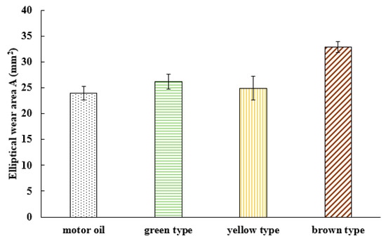 The lubricity of the tested oil was determined according to the size of the elliptical surface on the test cylinder [33]. The smaller the size of the wear area on the cylinder, the better the lubricating properties of the oil. Equation 4 was used to calculate the elliptical surface [34].