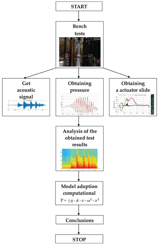 Previous research and analyses have focused on obtaining the appropriate power in the actuator based on the pressure increase caused by a dynamic load in the sub-piston space. Examining the current European Directive [68] concerning the safety of machinery, its requirements concern defining the sound power level as a measure of the noise emission of machinery. The method of determining the sound power level shall be harmonised with that directive [69,70]. The tests complying with the Directive’s standards are part of the certification tests covered with the obligation of safety certification and the manufacturer’s obligation to issue a declaration of conformity. The test procedure shall use the methods described with the standards [71].