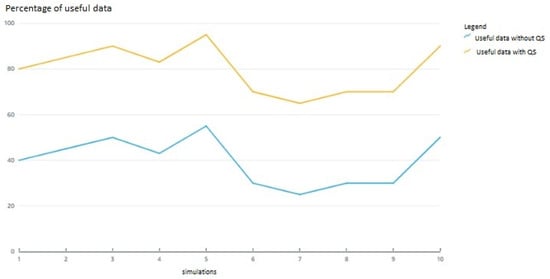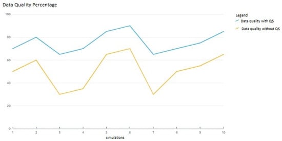 In Figure 5, we can see how the percentage of data quality increases by applying the cloud tool, having a great impact on the 10 simulations.