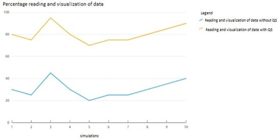 In Figure 6, we can see how there was an improvement in the percentage of reading and visualisation of data. This is due to the fact that in the pretest, the Quicksight tool was not applied, and the data were only shown in tables with a low reading rate and no graphical visualisation.