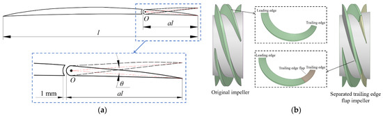 Separate trailing edge flap. (a) Separate trailing edge flaps. (b) Original impeller and separated trailing edge flap impeller.