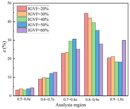 From the data in Figure 8, it is apparent that the distribution of air blocks in the impeller channel is more consistent under different inlet gas volume fractions. More than 80% of the gas-phase aggregates at different inlet gas volume fractions are in the range of 0.7e~1.0e, which corresponds to the flow channel at the position of 70~100% of the chord length of the multiphase pump blade according to the similarity triangle rule.