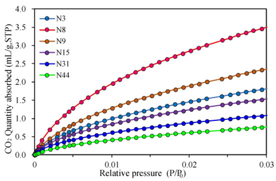 Low-pressure CO2 adsorption isotherms.