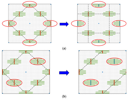 Well pattern adjustment method. (a) The transferring of a square well pattern to a five-point pattern. (b) The transferring of a square well pattern to a row well pattern.