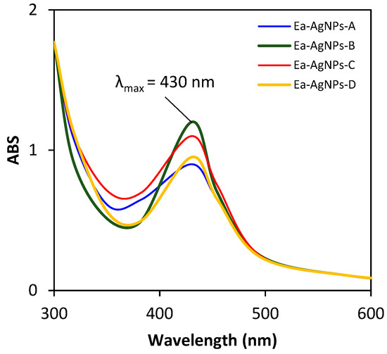 - The third class includes the four nanoparticles Ea-AgNPs-A, Ea-AgNPs-B, Ea-AgNPs-C, and Ea-AgNPs-D.