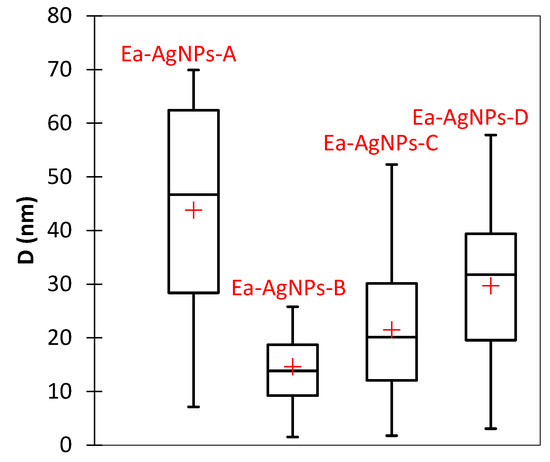 Box plot of particle sizes of the synthesized Ea-AgNPs.