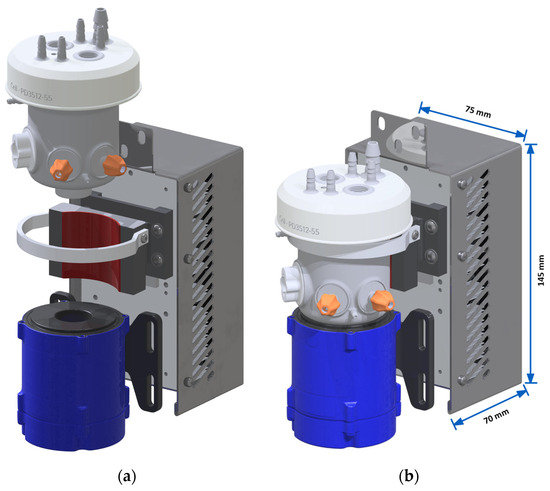 The sensing scheme was based on the idea of combining independent sensors, which offers several advantages. By using multiple sensors, data continuity can be ensured through redundancy, and the combination of multiple sensors allows for more process control and insight. The sensors used in the bioreactor prototype were designed as individual ports that can be connected to the vessel. Using this approach, the ports can be developed and manufactured separately from the vessel body, allowing the different project partners to develop independently. The assembly, shown in Figure 8a, allowed for the inline measurement of pH, DO and biomass.