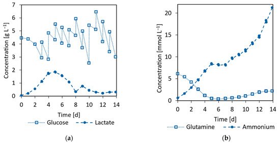 Daily analytics consisted of VCD and total cell density (TCD) measurement, using a Cedex HiRes Analyzer (Roche Diagnostics, Basel, Switzerland). Furthermore, concentrations of glucose, lactate, glutamine, ammonium and IgG were measured using a Cedex Bio Analyzer (Roche Diagnostics, Basel, Switzerland). Only a single sample was drawn per day and all measurements were carried out as single determinations. Offline pH was also measured and used to recalibrate the inline pH sensor if the deviation was higher than 0.05 pH units.