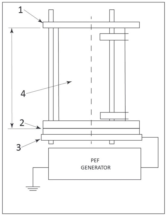 Experimental setup for PEF treatment (1—high voltage electrode (movable); 2—ground electrode; 3—isolated bottom base; 4—reactor chamber).