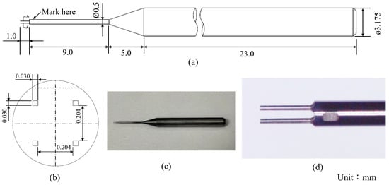 - Mochimaru, Y.; Ota, M.; Yamaguchi, K. Micro Hole Processing Using Electro-Chemical Discharge Machining. J. Adv. Mech. Des. Syst. Manuf. 2012, 6, 949–957. [Google Scholar] [CrossRef]