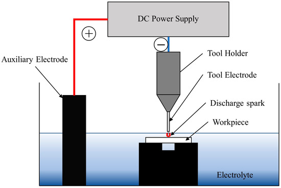 - Rathore, R.S.; Dvivedi, A. Sonication of Tool Electrode for Utilizing High Discharge Energy during ECDM. Mater. Manuf. Process. 2020, 35, 415–429. [Google Scholar] [CrossRef]