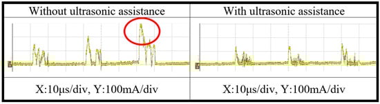 3.1. Comparison of Processing with and without the Assistance of Ultrasonic Vibration