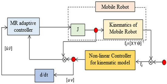 Block diagram of control structure for dynamic model of mobile robot.