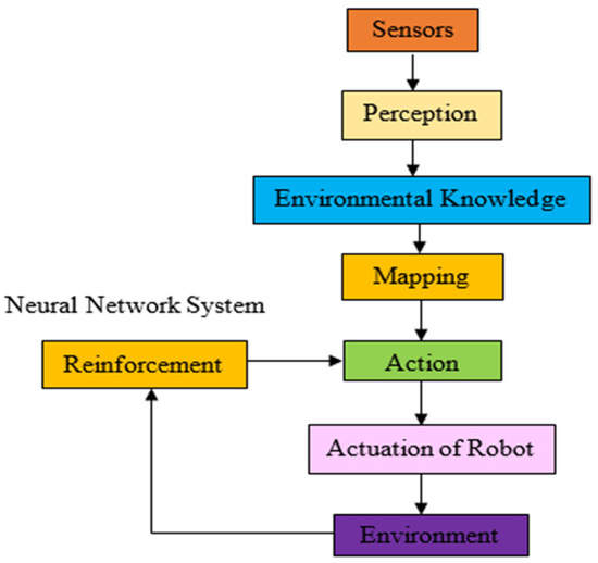 Kinematic and dynamic analysis is also a difficult issue in WMR path and motion planning concerns since kinematics and dynamics play a vital part in obtaining mechanical behavior and developing control software for a special purpose WMR. When the WMR is cinematically stable, the next job is the development of a controller that must be capable of navigating intelligently in the real-world workspace [6]. Building intelligent controllers will need artificial intelligence (AI) techniques. This is because sophisticated methods such as fuzzy if–then rules, brain-intensive characteristics, genetic theories, and others are very good at imitating the fuzziness of human knowledge and reasoning processes [7]. Many attempts have been made to summarize the various techniques [8], considering the numerous research articles on the WMR path and motion planning challenges that have recently been published.