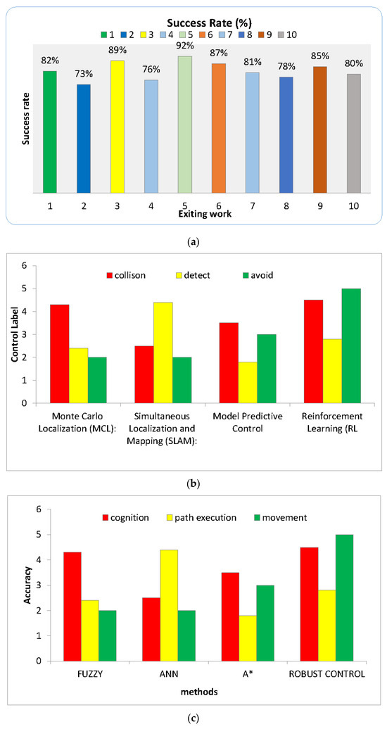 In [83], to give a dependable mobility plan that works at the sensor frequency, merged map-based and sensor-based planning operations. A workable strategy for coordinated motion planning of many robots without conflict was developed by Chiddarwar and Babu [84]. Their suggested technique’s two-phase decoupled mechanism can offer the necessary coordination amongst the participating robots in offline mode. A route modification approach is utilized in the second phase to resolve conflicts and enable coordination across multiple robots. In the first phase, an algorithm is employed to identify each robot’s collision-free path about stationary objects. A route modification approach is utilized in the second phase to resolve conflicts and enable coordination across multiple robots. An algorithm is used in the first stage to determine each robot’s collision-free route relative to stationary objects. The coordination of the robots is also accomplished using several approaches to ensure the efficacy of the recommended plan. The timing and the route were both enhanced.