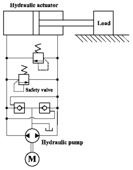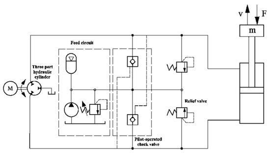- Wang, B.; Li, Y.H.; Zhao, B.; Ge, L.; Quan, L. Comparative Study on Energy Efficiency Characteristics of Pump-controlled Asymmetric Hydraulic Cylinder Systems. Hydraul. Pneum. 2018, 10, 8–14. [Google Scholar]