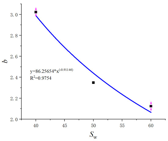 The relationship between the multiplicative power index b and the bound water saturation Sw can be obtained from Figure 5: