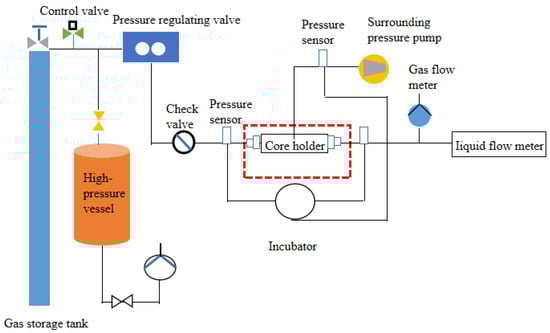 In order to study the gas–water co-permeability characteristics of low-permeability reservoirs, this article selected seven tight sandstone core samples for gas-driven water experiments. The experimental procedure is illustrated in Figure 10 and includes the following steps: