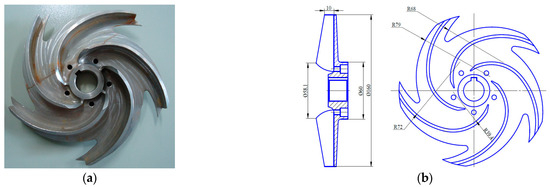 Open impeller: (a) real model; (b) impeller dimensions.