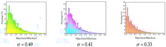 Statistical diagram of bubble length–diameter ratio under different cavitation numbers.