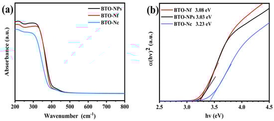 (a) UV–Vis absorption spectrum and (b) bandgap evaluation curves of BTO samples.