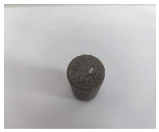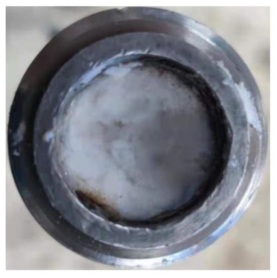 The results of the online NMR experiments with injected nano-elastic microsphere solutions are shown in Figure 10. During the 0.5 PV injection, there is a noticeable decrease in the peaks corresponding to middle and small orifices. Subsequent to this stage, these peaks exhibit an increasing trend and show a tendency to shift towards the left. The peaks associated with large orifices consistently trend upwards, indicating a continuous ingress of the microsphere solution. Upon concluding the experiment and after the removal of the core adder, microspheres were observed at the core’s exit, as shown in Figure 11. This observation confirms the successful injection of nano-elastic microspheres into the core.