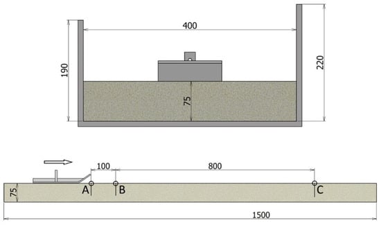 An alternative way of measuring the friction parameters and the penetration of the tool into the bulk material was measured on a validation system for pulling and pushing tools (hereafter validation system, Figure 2). Also, the apparatus was used to dynamically run the system. The validation system was patented by the VSB—Technical University of Ostrava [25].