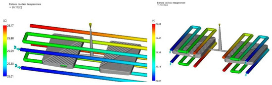 where denotes the temperature difference between the outlet and inlet of the mold; W denotes the total mass of plastic melt injected into the mold cavity per unit time, in units of kg/h; Q is the heat released per unit mass of plastic part during solidification; L is the length of the cooling pipe; d denotes the diameter of the cooling pipe; and h denotes the heat transfer coefficient between the wall of the cooling pipe orifice and the cooling medium, in units of . The details are as follows (Table 1).