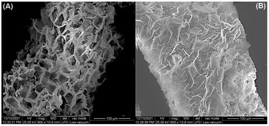 SEM images of adsorbent surface before (A) and after dye adsorption (B).