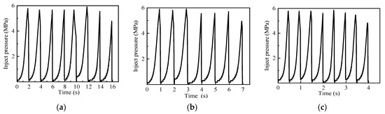 The influence law on three specimens was verified using a 1 Hz pulse frequency at 15 MPa, 16 MPa, and 17 MPa pulse amplitudes. Figure 26 shows the injection pressure curves.