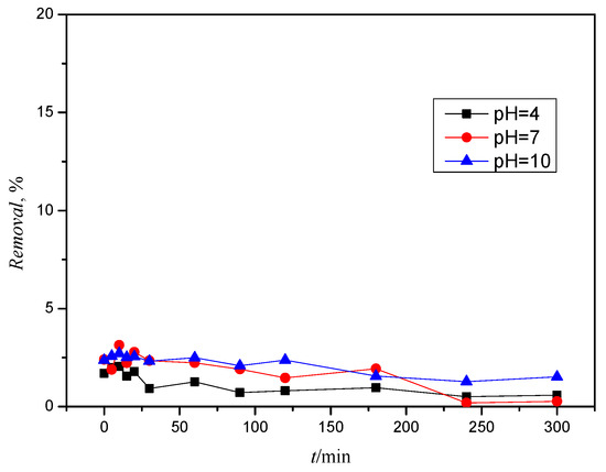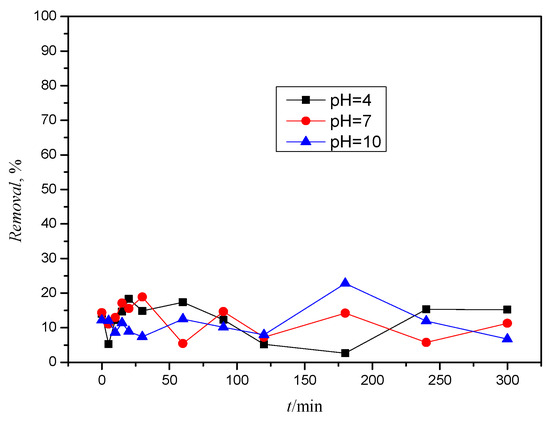 Removal of CLO during 5 h of solar radiation at different pH values.