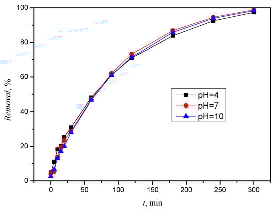 The results show that under simulated solar radiation and the presence of hydrogen peroxide, the removal of ACE is ≥98% (Figure 8). From the results, it can be seen that the removal of xenobiotics is greatest at pH 4 and it is in the acidic solution that ACE was removed first, and with an increase in pH value, the removal becomes slightly slower.