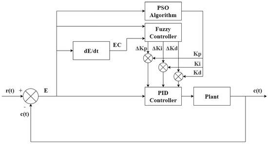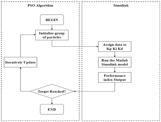 The control schematic and simulation flowchart of the PSO fuzzy PID controller are shown in Figure 6 and Figure 7.